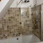 Gite Picturesque De 4 Chambres, Pays D'Auge offre un patio e una zona pranzo con un divano e una scrivania. Gli ospiti possono inoltre godere di un camino in pietra e usufruire di una TV a schermo piatto con canali satellitari. Questo luogo offre una cabina doccia, un bagno alla francese e una vasca da bagno, oltre a comfort come asciugacapelli e teli da bagno.